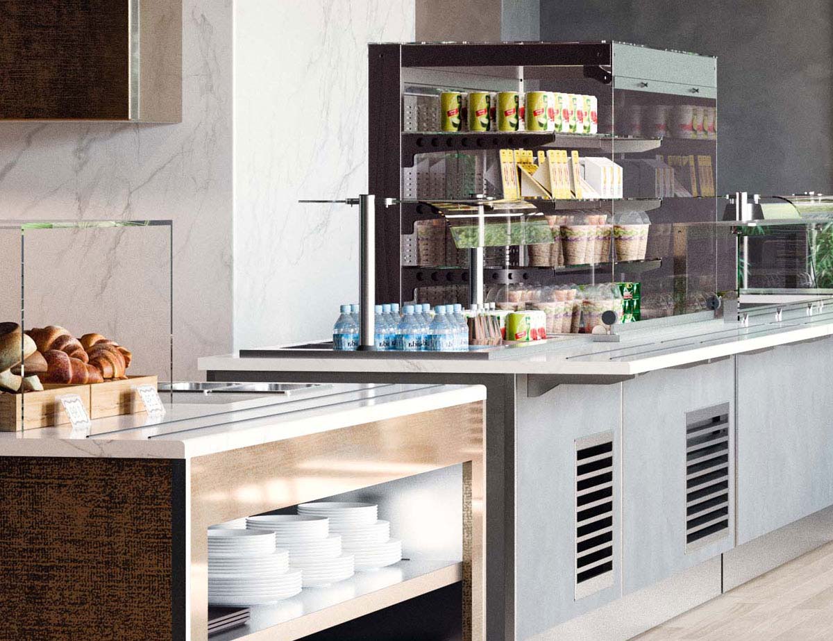 Self Service collective catering revisited with creative and rational solutions to make it suitable for all the milieux, from the most classical use to the less institutional and most imaginative contexts.