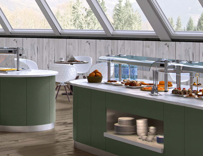 Massima efficienza per il servizio veloce. Soluzioni compatte e personalizzabili per il servizio self o assistito, ideali per il take away e la ristorazione dinamica.